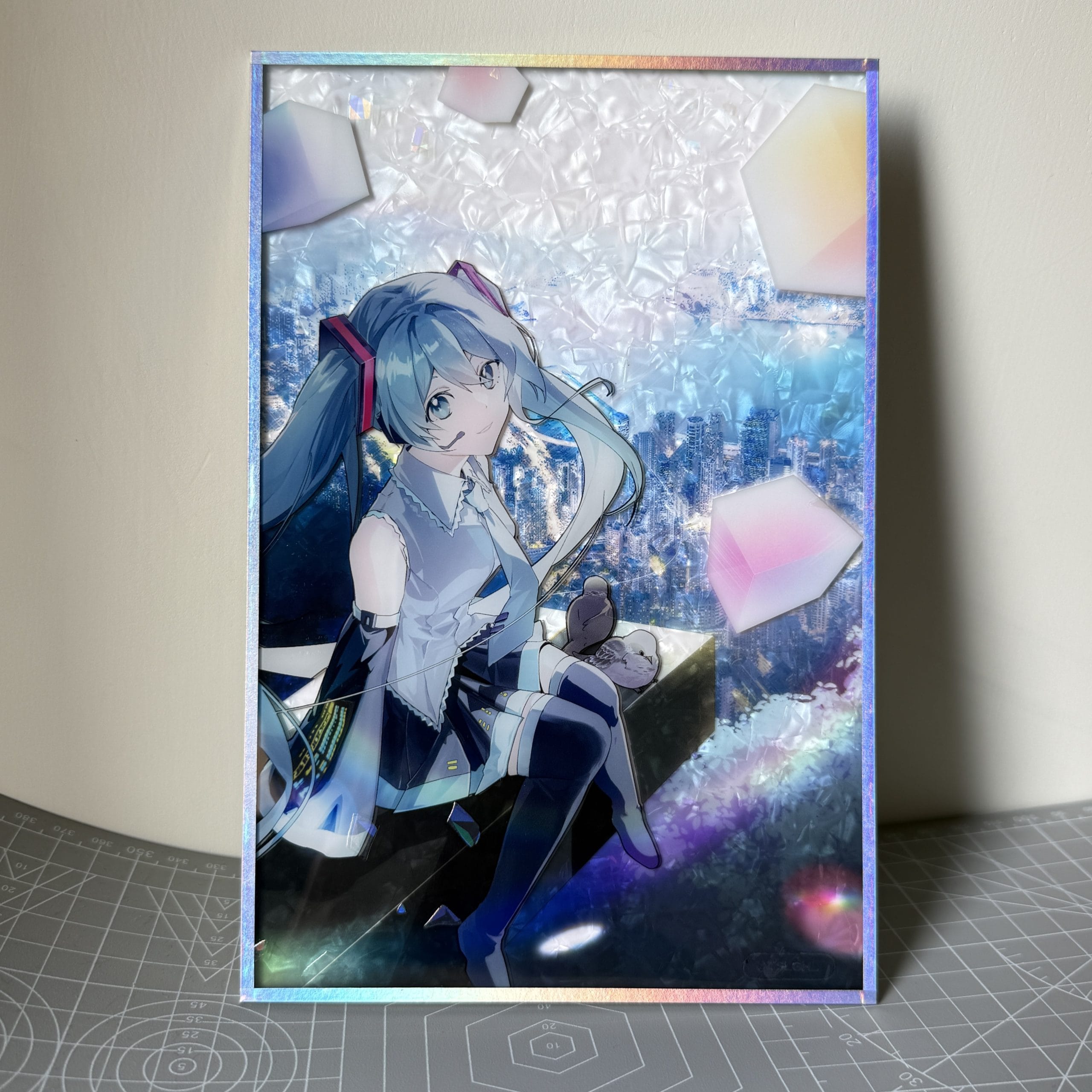【Consignment寄賣 – CHELL】Miku in Hong Kong ♡ 3-Layered Holographic Cold Foil Acrylic Shikishi 三層景深貝殼光白瓷壓克力色紙